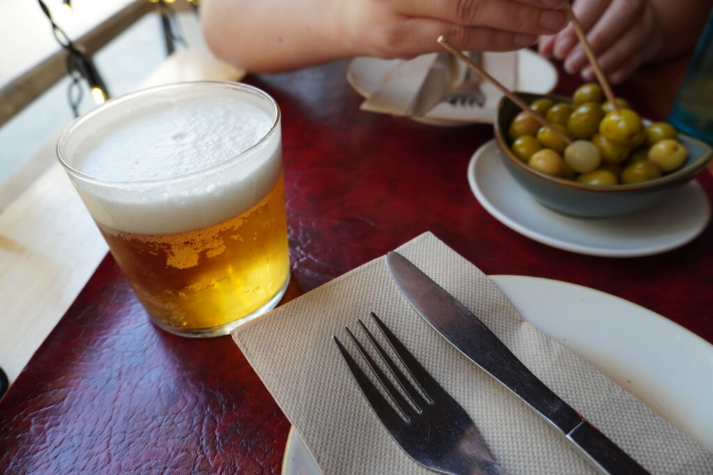 Bylo ideálních 26 °C, takže lidí dost, ale ne hlava na hlavě. Moře studený, ale samozřejmě skvělý a překvapivě čistý – a v něm skoro nikdo. Užili jsme si těch pár hodin a pak šli na tapas do restaurace za rohem.