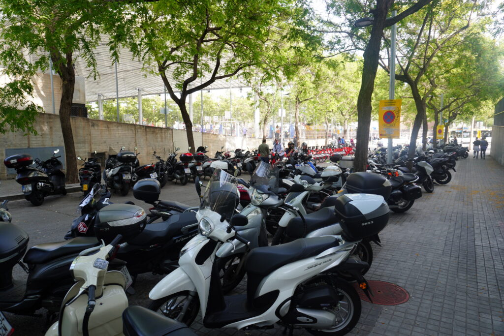 Přímo ke stadionu se dá dojet na skútru, mají tam totiž speciální parkoviště jen pro motorky. Narváno bylo k prasknutí, ale já jsem fest pospíchal a tak mi nezbývalo než to nechat „trochu“ bokem. Spousta dalších lidí nechávala svoje skútry vedle mě z obou stran, takže mě ani na vteřinu nenapadlo, že by s tím mohl být nějaký problém.