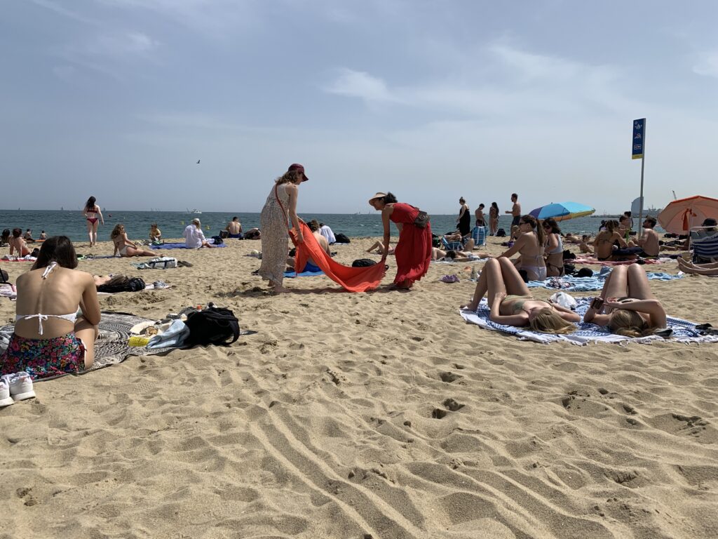O víkendu jsme se tak konečně poprvé dostali na pláž. Původní myšlenka byla jet vlakem trochu dál na sever, kde by to asi bylo trochu hezčí, nakonec jsme to ale z lenosti udělali jako místní a došli si na městskou pláž – v našem případě Platja de la Mar Bella.
