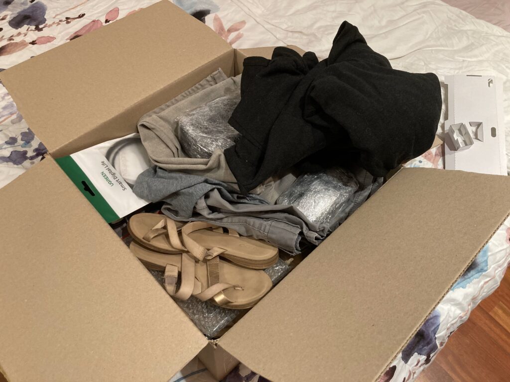 Taky jsme konečně zabalili a poslali první balík zpátky do Čech! Myslím, že minimálně pět kilo to bylo. Velkej úspěch. Jde to pomalu dolů a ještě určitě trochu půjde.