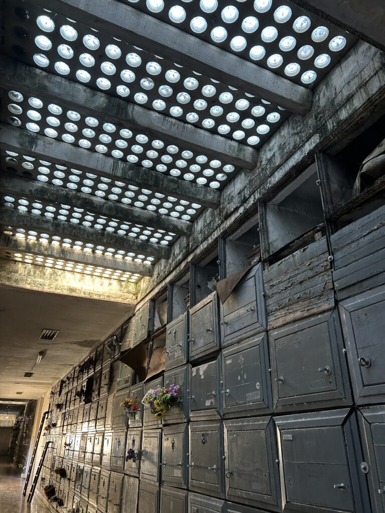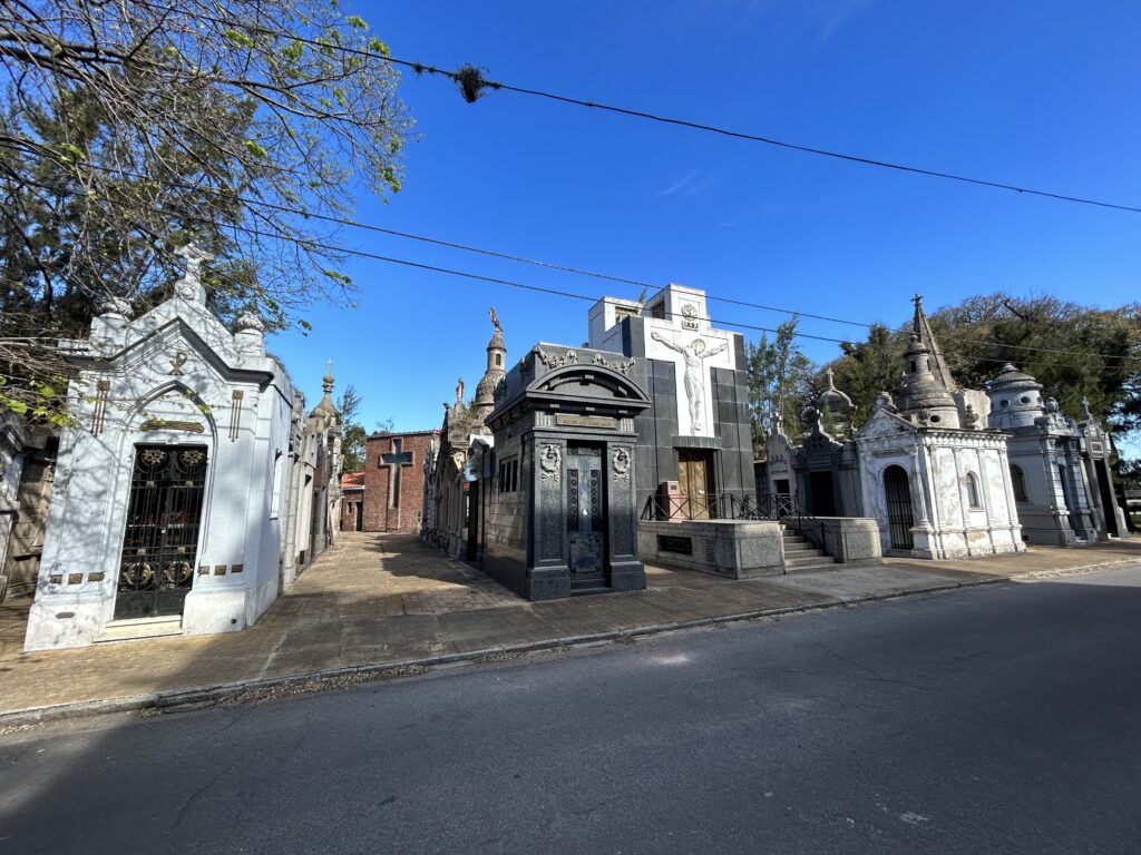 Z nejzajímavějších míst stojí za zmínku hřbitov Chacarita. Obří obří místo. Nesmírně zajímavý a syrový, cítili jsme se tam dost zvláštně. První část tvoří masivní hrobky významných argentinských rodin. Ty největší mají i několik pater a umístěny jsou tam desítky členů jedné rodiny. Hrobek je tu na pět tisíc. Význámná část z nich je ale už opuštěná, protože není nikdo, kdo by se o ně staral.
