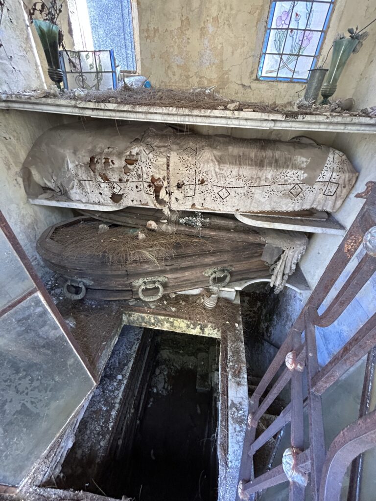 To má za následek, že spousty jich je zchátralých až na pokraj kolapsu. Vymlácená okna, chybějící dveře, rozpadlý střechy – nic neobvyklýho. Hluboko v bludišti jdou nalézt i hrobky, kde jsou zvenku vidět rakve. Některé pootevřené nebo poškozené tak, že jde vidět přímo do nich. Moc jsme nevěděli co si o tom všem myslet.