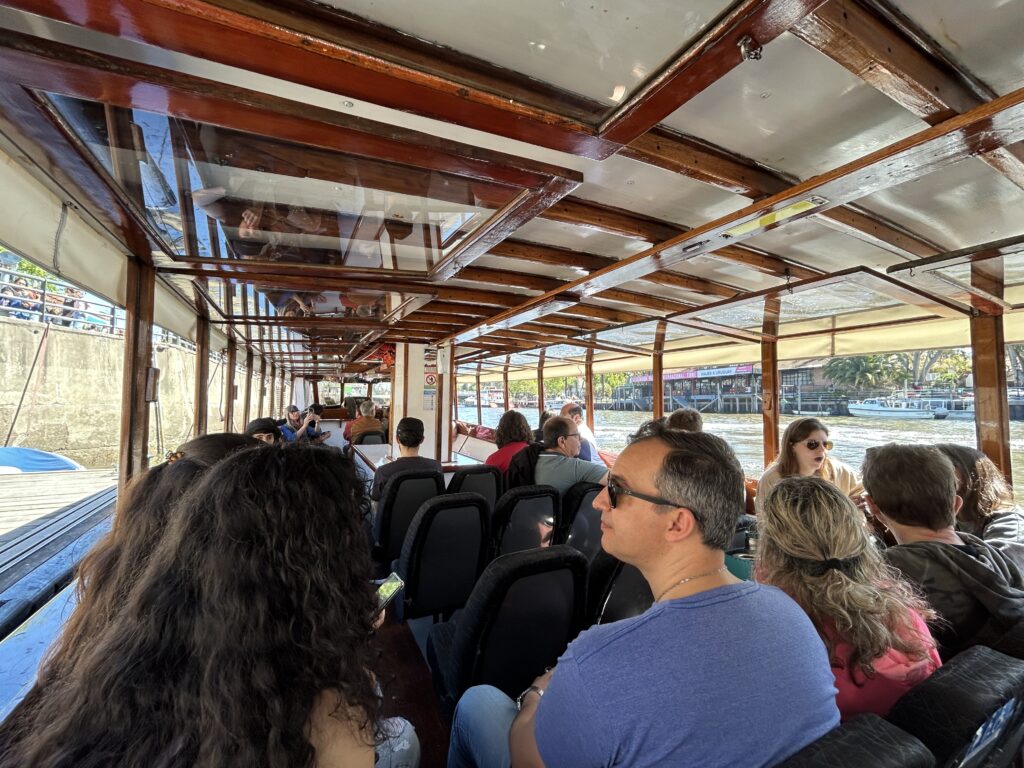 Volba tak padla nuceně na místo, kterému se přezdívá Benátky Argentiny a kam si místní jezdí na víkend odfrknout. Vyklubal se z toho nejspíš nejlevnější celodenní výlet od doby co jsme na cestě. Taxi na nádraží vyšlo na třicet korun, hodinová jízda vlakem do El Tigre vyšla na koruny TŘI, a zpáteční jízdenka lodí stála 1000 pesos, takže zase jen třicet korun. Tři různý druhy dopravy a ve dvou lidech jsme se vešli do stovky.