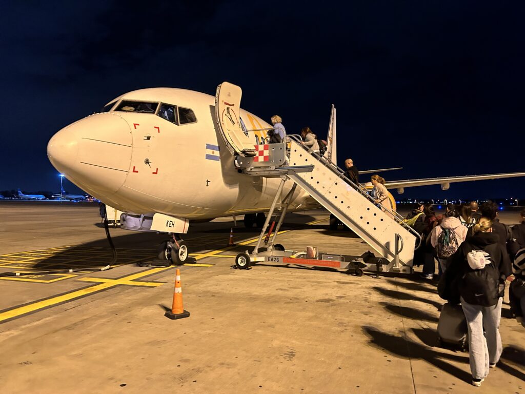 Naše bankovní konta řvou o pomoc a moje mozkový buňky taky. Ale máme to! Obrovská úleva. Uprostřed procesu výběru jsem už absolutně rezignoval na výběr aerolinek. Úplně podružná věc. Jediný, co rozhoduje, je délka letů a počet přestupů. Samozřejmě taky cena. Díky tomu, že jsme fyzicky v Argentině, daří se nám koupit dvě z letenek za argentinské Pesos. Tedy za poloviční cenu. Trochu tím riskujeme, protože na letišti by si někdo mohl všimnout, že ani omylem žádní Argentinci nejsme… Ale úspora je to tak neskutečná, že to prostě musíme zkusit a svoje rezidenční čísla si vymyslíme.