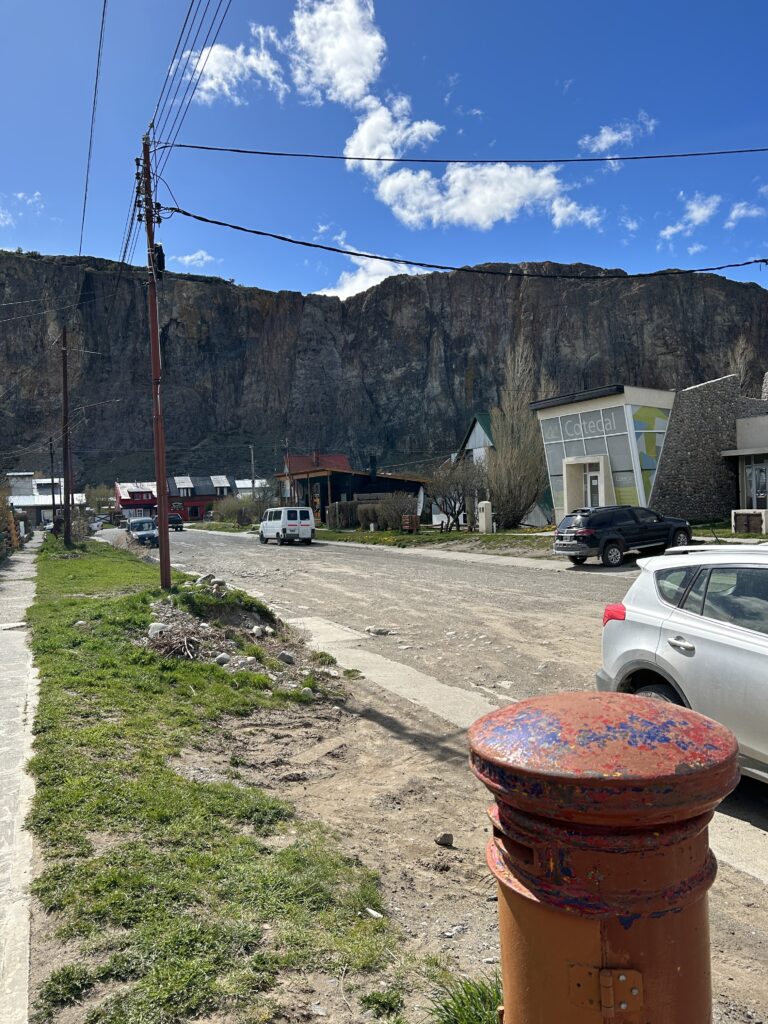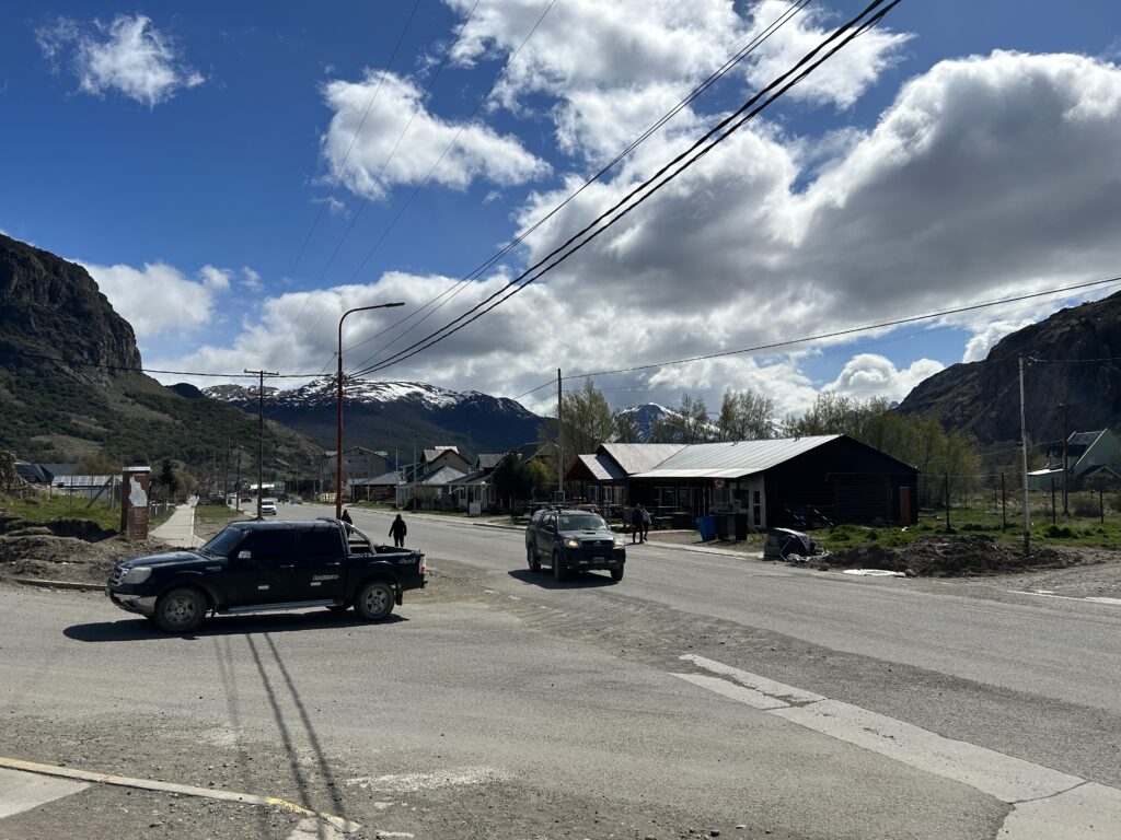 Do El Chalten, našeho dnešního cíle, dorážíme krátce před jedenáctou. Je ještě moc brzo na to jít se ubytovat v hotelu, ale zase tak nám to nevadí, protože si to tady stejně chceme trochu prohlídnout. Je příjemně. Nějakých deset stupňů? Svítí sluníčko, ale je poznat že jsme v horách a že místní za sebou mají pravděpodobně dost tvrdou zimu.