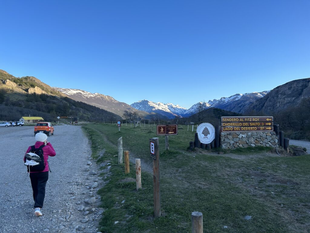 Jdeme pár kilometrů přes probouzející se El Chalten a nikde nikdo není. Jsme mezi prvními. Po chvíli stojíme před branou národního parku Sendero al Fitz Roy a naším cílem je Laguna de Los Tres. Trasa zhruba třicet kilometrů, nicméně dobré dvě třetiny jsou víceméně po rovince.