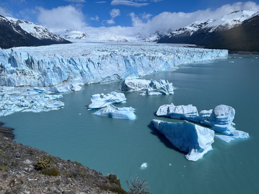 Všem, co mají z globálního oteplování dobrej den, odpovídá ledovec postupným (byť velmi pozvolným) zmenšováním. Každých zhruba dvacet minut se to projeví nezaměnitelným skřípotem a následnou ránou kusu odpadajícho ledovce do jezera Roca pod ním. Několikrát jsme to viděli na vlastní oči a je to skutečně zážitek kterej nevídíte každej den.