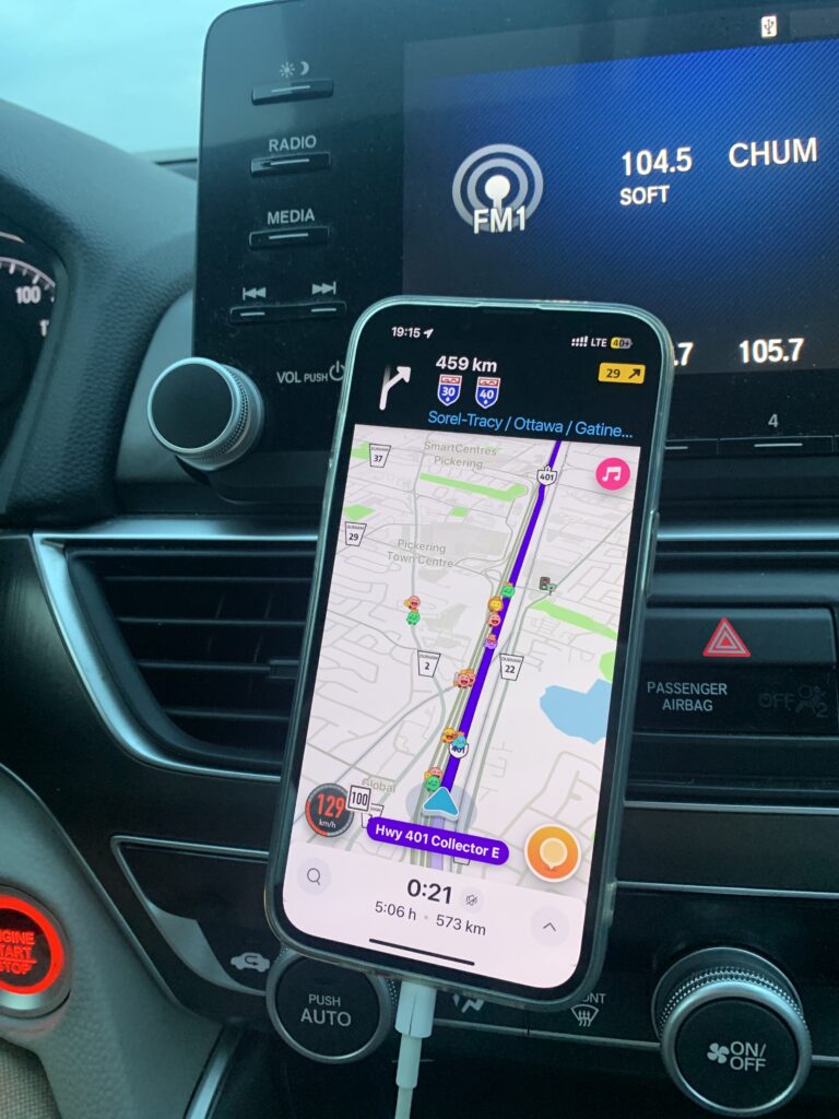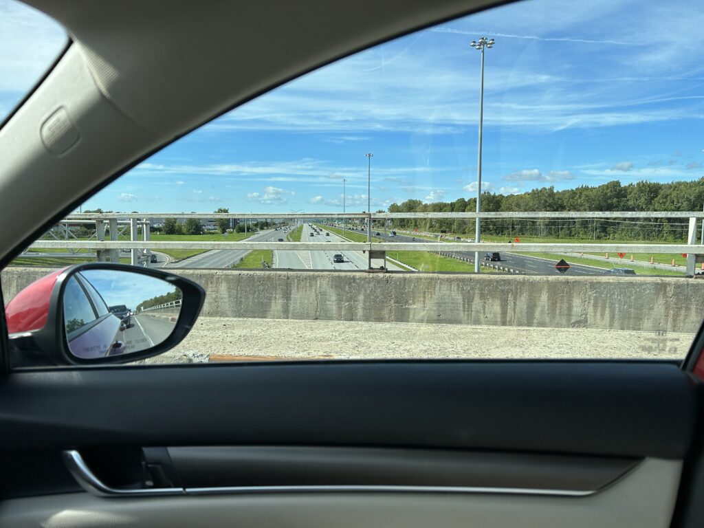 Ptáme se sami sebe zhruba po dvou hodinách přilepených k dálnici směr Toronto. Na počítači v mapách to vždycky vypadá jako pohodička, ale pak když člověk musí těch 600 kilometrů reálně odjet, je to najednou otrava. Jede se jen po dálnici a utíká to pomalu.