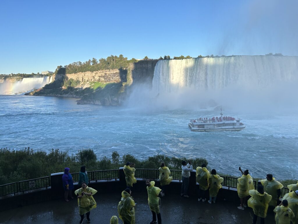 No, cesta nakonec trvala hodiny skoro tři. Pařák. Kolony. Proklínali jsme to. Parkoviště za 35 (!) dolarů, bez možnosti zaparkovat někde bokem na prasáka. Tak tak stíháme tour, kde nás nechají sjet výtahem blíž k vodopádům. Je to ikonický místo zcela po právu, bavilo nás to tam.