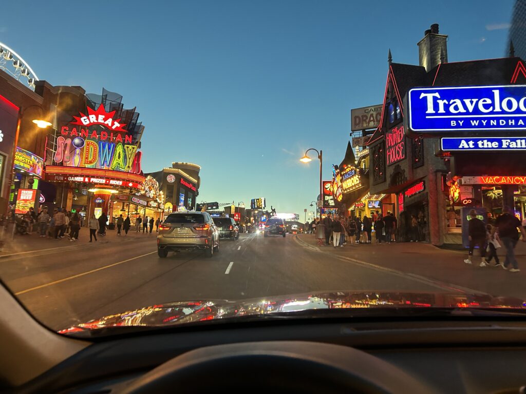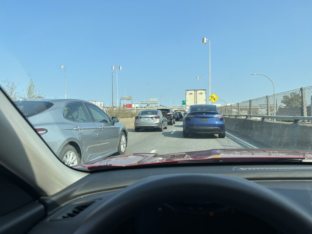 Po dalších několika hodinách cesty končíme uvěznění v zácpě před Torontem. Přestože se dálnice rozprostírá místy až na šesti proudech (v jednom směru), vůbec se nehejbeme. Klasika, kterou známe už z Montrealu – když je kolona, tak je nekonečná. Být jedním z těch milionů, co to absolvují každý den dvakrát, tak to se mnou dopadne jako s tím týpkem z Volnýho pádu. Najednou ho chápu. Všichni kolem jsou na to ale zvyklí, tady je to součást tamní kultury.