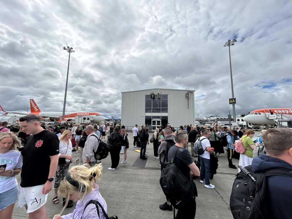 Lidi z několika letů stojí namíchaní vedle sebe pod letadly. To se mi ještě nestalo. Přiznám se, že v první vteřině mi málem vyhrkly slzy. Hlavou mi projely všechny možný scénáře, a žádnej z nich nebyl pozitivní.