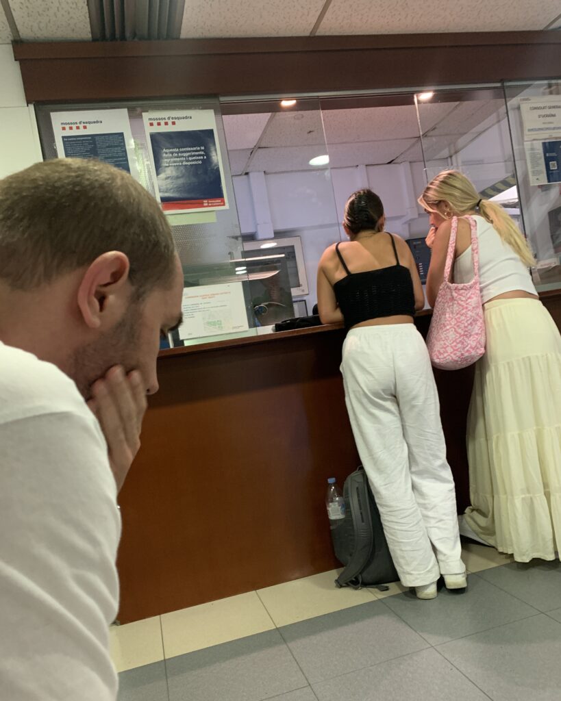 Překvapivě to ale vše proběhlo velmi důstojně. Na řadu jsme se dostali asi po dvaceti minutách. Čekání jsem využil k tomu, že jsem si celou situaci sepsal a přeložil na mobilu do katalánštiny. Takže pak jsem oficírovi na recepci jen podal telefon a nic nevysvětloval. Anglicky totiž moc neuměl. Díky tomu hned pochopil co se stalo, vzal si mojí občanku a poslal nás do druhýho patra.