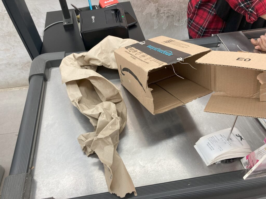 Přibíhá majitel prodejny, někam volá, a následně má super osvícený řešení; „to si musíš vyřídit s Amazonem“.